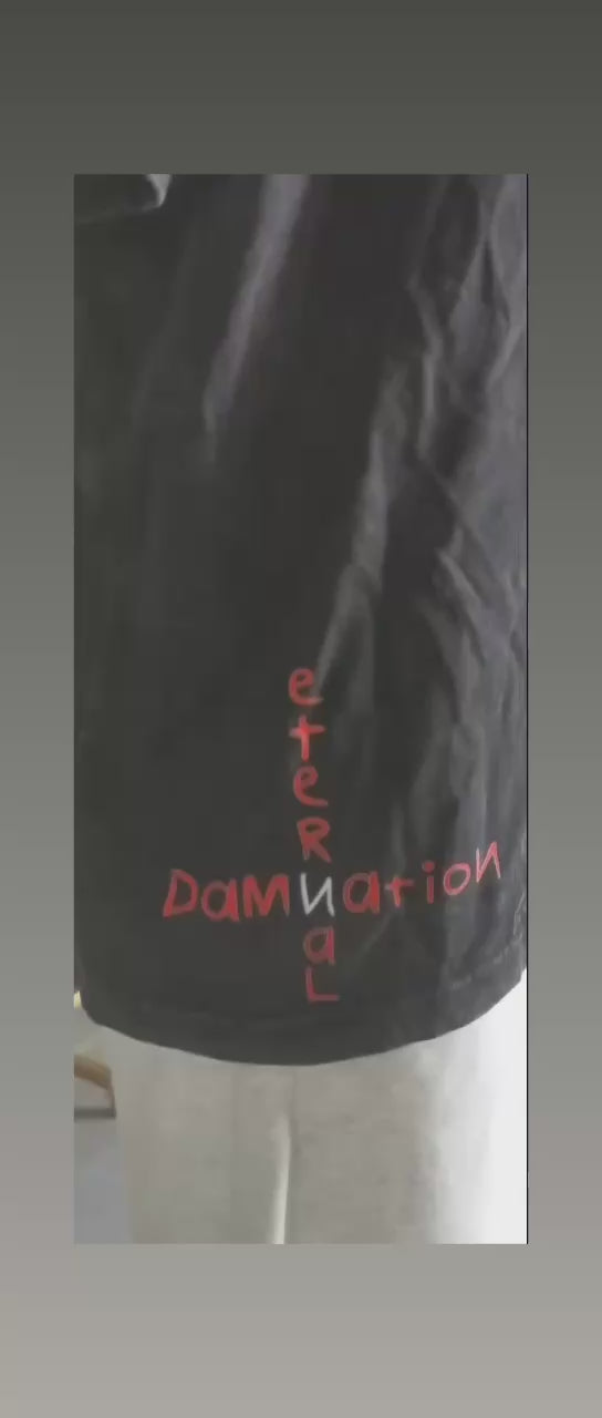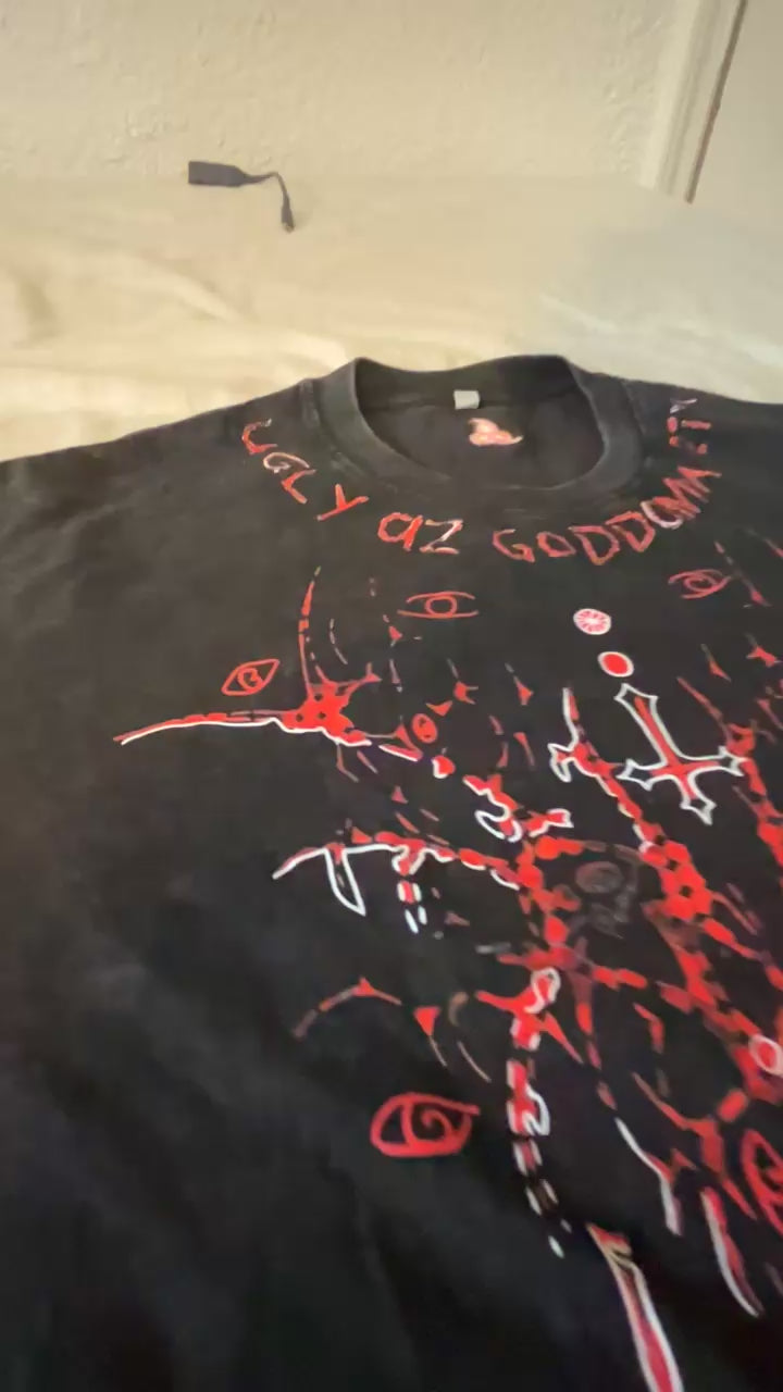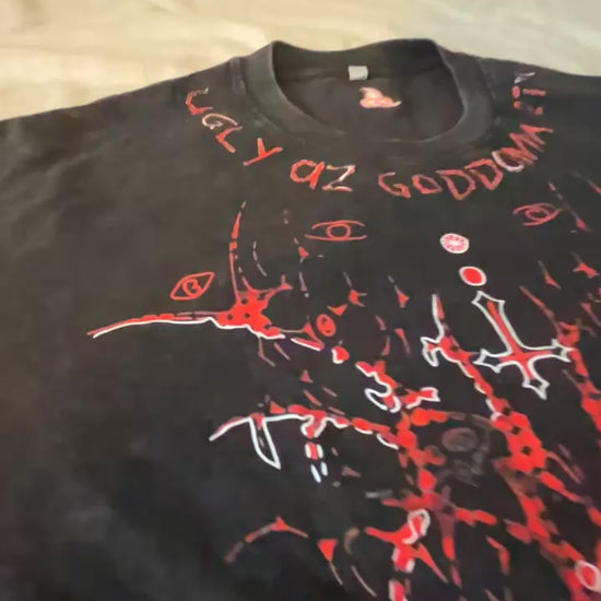 Around the collar, the statement “UGLY AZ GODDAMN SIN” makes its presence known, while the lower hem is branded with the haunting words “eternal DAMNATION.”